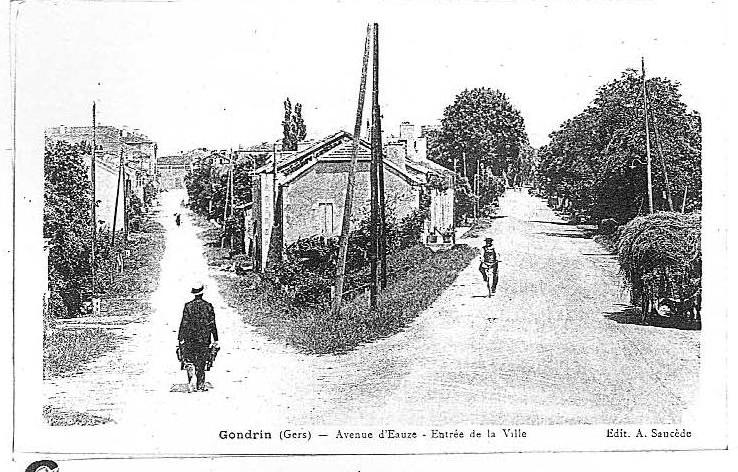 Chez plusieurs commerçants de Gondrin, nous avons accroché des reproductions d'anciennes cartes postales représentant le lieu ou son environnement proche, tel qu'il était au siècle dernier.