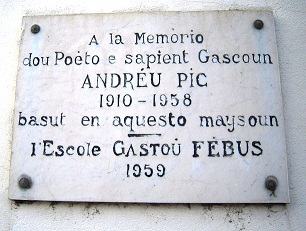 A Gondrin, il a vécu son enfance dans la maison de ses grands parents en face de la Croix du carrefour de la route de Courrensan, facilement reconnaissable avec son tympan original et ses volets bleu clair. Sur le côté droit du mur de façade, la plaque apposée en sa mémoire par l'Escola Gaston Febus.