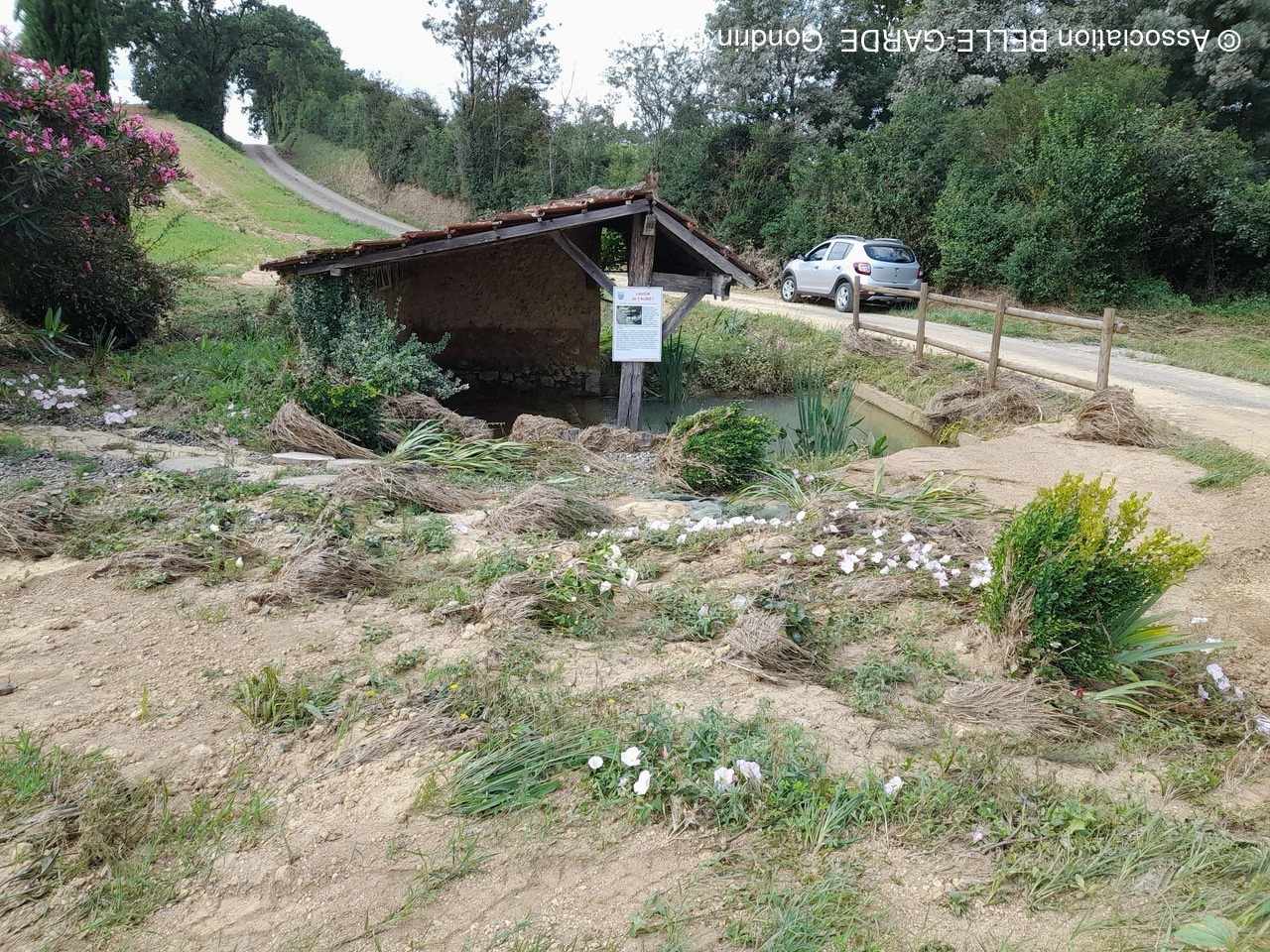 JUIN 2023 aura été dévastateur pour bon nombre d'entre nous et pour le lavoir de CAUBET qui a subi le pire orage depuis que nous l'entretenons.