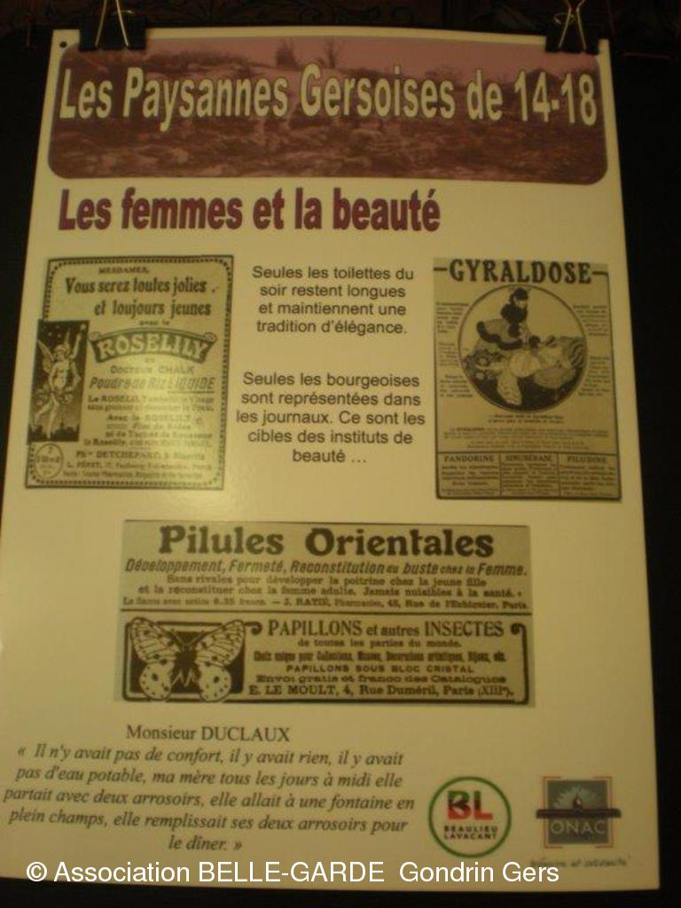 Après le lancement de notre livre : LA RUE DES CORNIERES à GONDRIN, nous vous avons présenté une exposition sur "LA VIE DES GERSOISES EN 14/18" et sur "LE LAVOIR DE CAUBET".